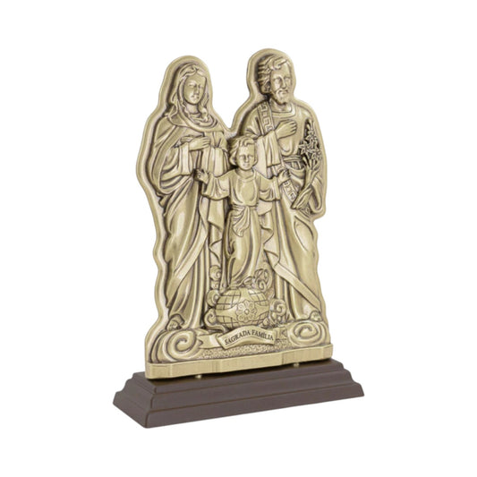 Holy Family Tabletop Figurine 7.9 Inches Antique Gold Finish with Prayer