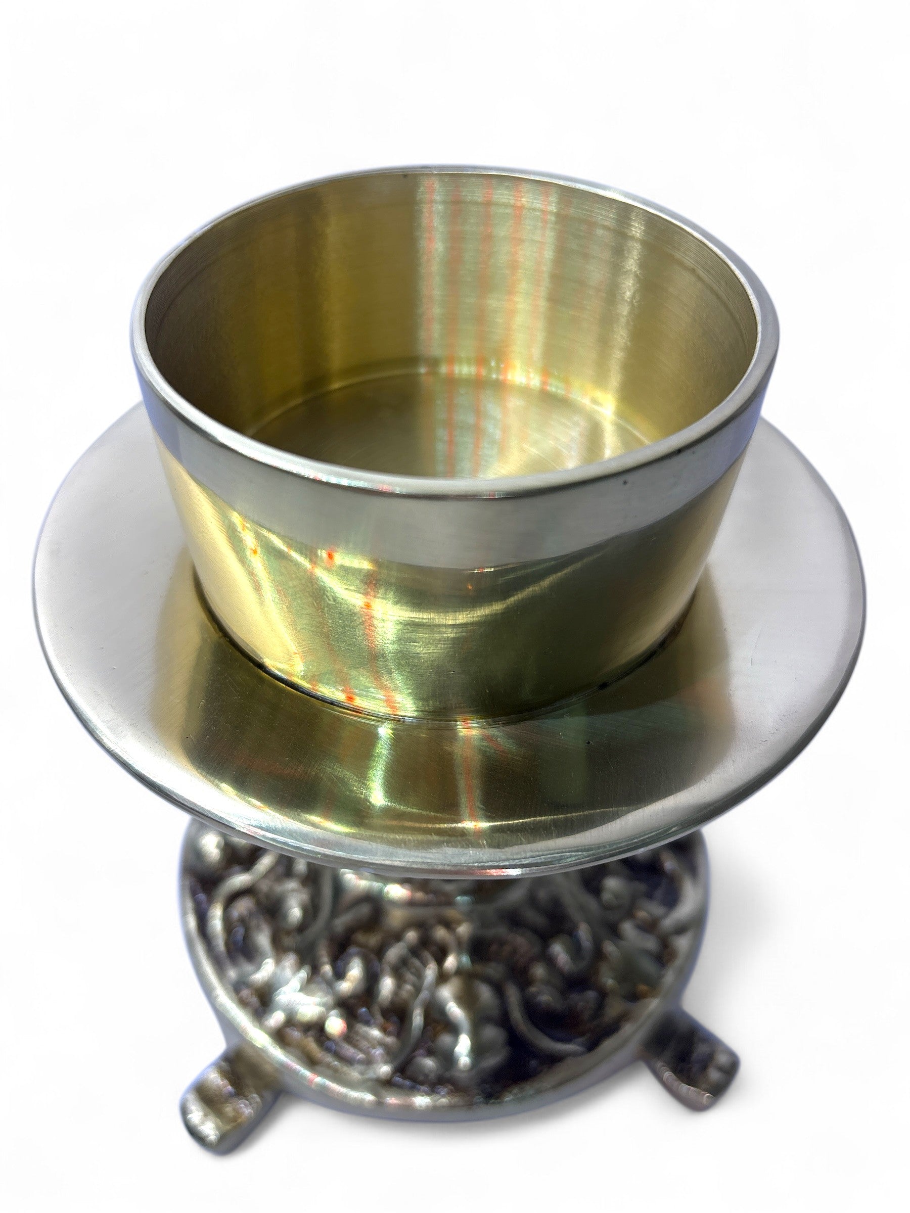 Illuminate your sacred space with this finely crafted Bronze 7-Day Candlestick, designed for enduring devotion and elegance. Forged from premium bronze, this 6.3-inch (16 cm) candlestick is built to hold 3-inch (7.5 cm) diameter 7-day candles, making it ideal for extended liturgical or prayer settings. Its polished finish and robust construction, weighing approximately 8.8 oz (250 g), ensure stability and a refined aesthetic for churches, chapels, or home altars. This candlestick combines durability with spiritual significance, perfect for continuous worship.