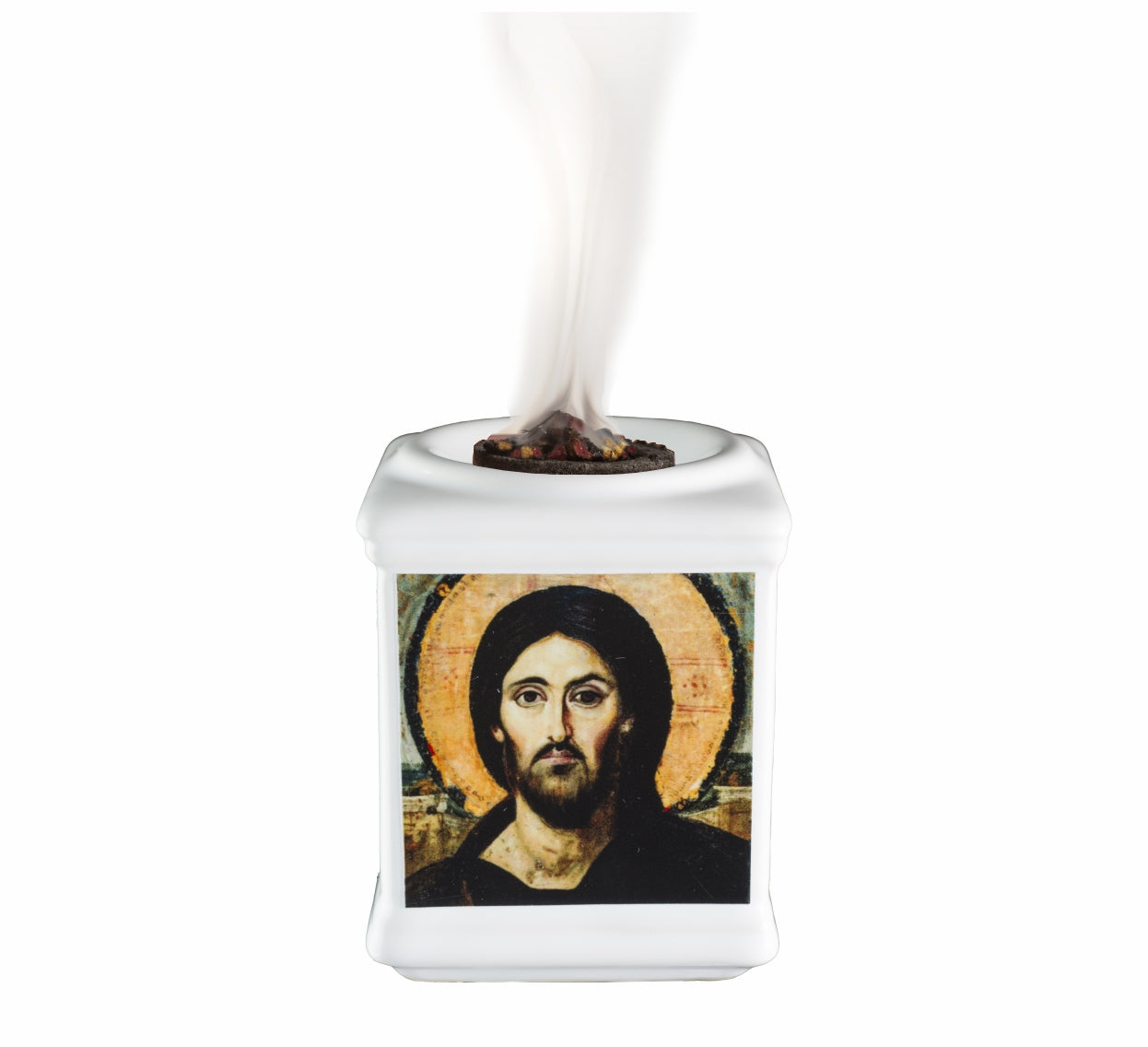 Burner, a thoughtfully curated set inspired by the Extraordinary Jubilee of Mercy. This compact kit features a premium blend of frankincense resin and nardo perfume, evoking purity and spiritual renewal, perfect for personal devotion, liturgical ceremonies, or as a symbolic gift. The incense's balanced intensity (rated 3/5) creates an inviting aroma that symbolizes an encounter with God's compassion, making it ideal for reflective prayer sessions. Pre-packaged for gifting, this ensemble combines essential tools for safe and effective incense burning in a sacred space.