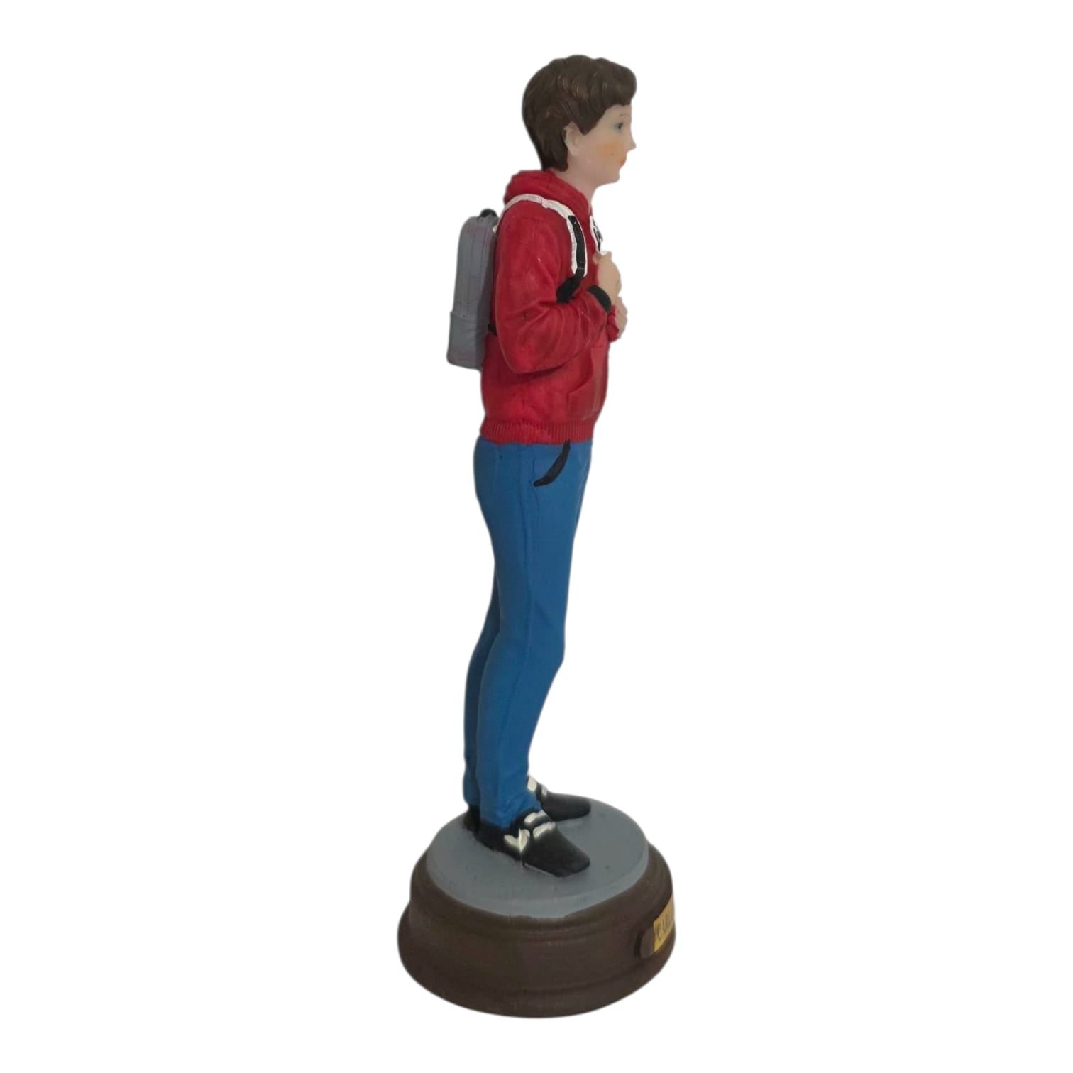 - Details: Classic outfit (red polo with Eucharistic emblem, jeans, white sneakers), often shown with symbols of faith and modern life (varies slightly by artisan)